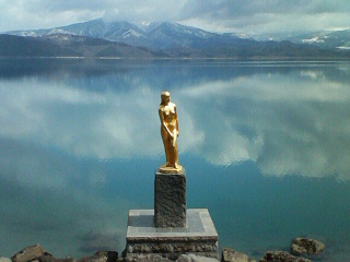 そして突然現れた、金色に光る女性・・・田沢湖の主"たつこ姫"の像です。