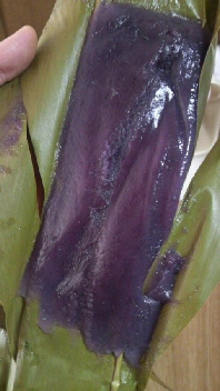 それにしても、草餅の緑や紅白でピンクのお餅などはありますが、いや~紫とはビックリ!!
