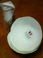 最近入手したという、ヤ○ザキの白いお皿シリーズ(笑)と、