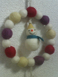 奥に見えるスノーマンのリース