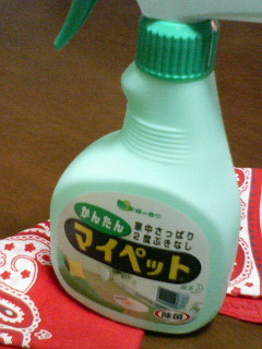 会社のビル清掃のおばちゃんの掃除カゴに、マイペットのスプレーを発見。
